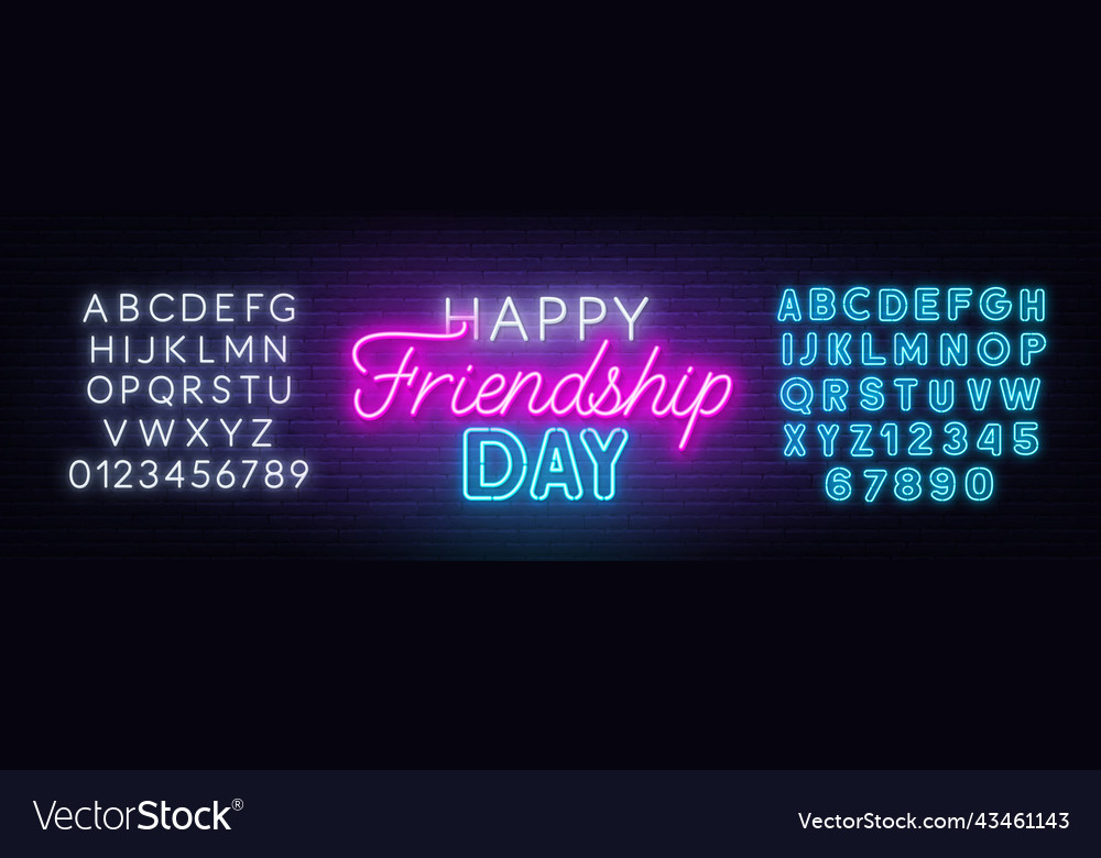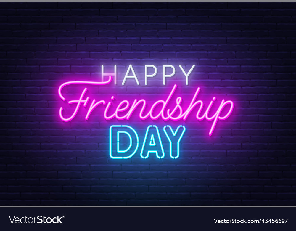 Happy friendship day neon lettering on brick wall Vector Image